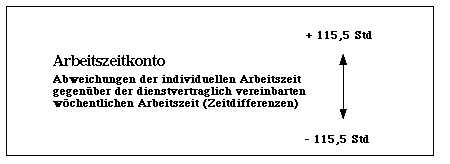 von +115,5 und -115,5 Stunden im Bezug zur vertraglich vereinbarten Arbeitszeit.
