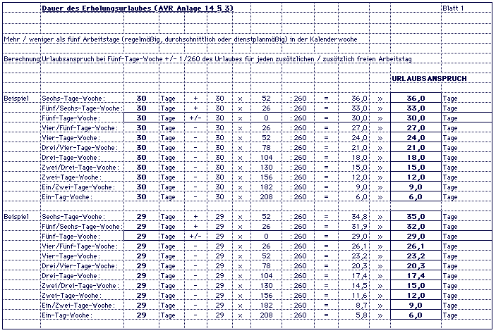 Urlaubsberechnung anhand von Beispieltabellen