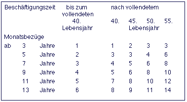 erhält nach Maßgabe folgender Tabelle eine Abfindung: