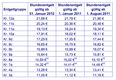 Diese Mitarbeiter erhalten ab 1. Januar 2010 eine monatliche Zulage in Höhe von 53,62 Euro, ab 1. Januar 2011 eine monatliche Zulage in Höhe von 53,94 Euro und ab 1. August 2011 eine monatliche Zulage in Höhe von 54,21 Euro. Diese Zulage entfällt in Abweichung zu Anmerkung V ab dem Zeitpunkt, zu dem die Mitarbeiter der Vergütungsgruppe Kr 2 Ziffern 1 und 2 höhergruppiert werden.