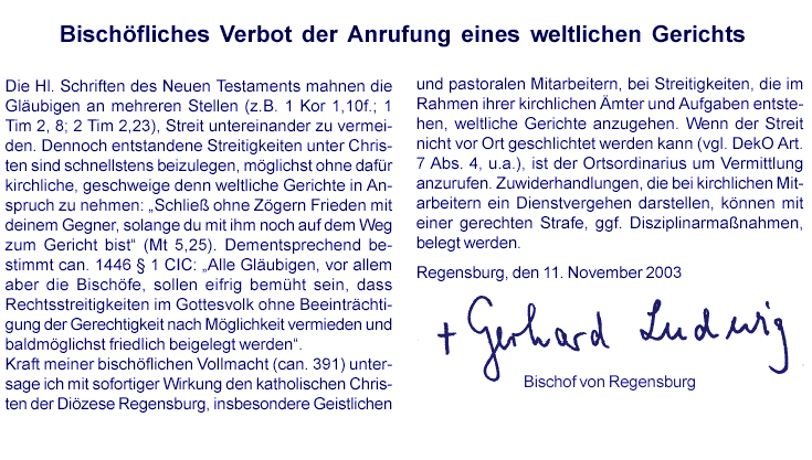 Bischöfliches Verbot der Anrufung eines weltlichen Gerichts