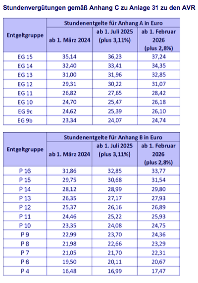 2Zum Monatsentgelt im Sinne dieser Vorschrift gehören das Tabellenentgelt gem. § 12 der Anlage 31 zu den AVR i.V.m Anhang A der Anlage 31 zu den AVR und weitere regelmäßige gewährte Zulagen.