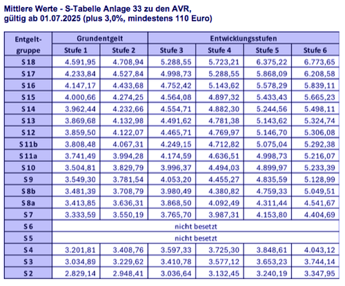 Für Mitarbeiter der Stufen 1 und 2 der Entgeltgruppe S 9 Fallgruppe 1 gelten die vor dem Inkrafttreten in der jeweiligen Regionalkommission festgelegten Tabellenwerte weiter, bis sie die Stufe 3 erreicht haben.