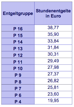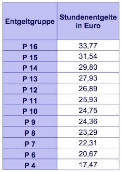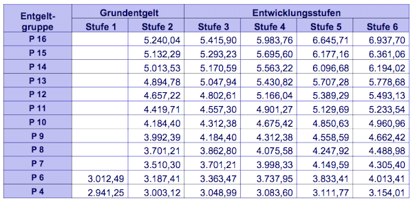Tabellenentgelt für Mitarbeiter in P-Gruppen (in Euro)